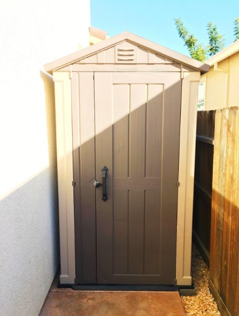 • Keter Factor 4x6 Outdoor Storage Shed | Shop Patio Furniture, Garden Tools, Bicycle Accessories, Beach Chairs or Lawnmowers | Taupe & Brown