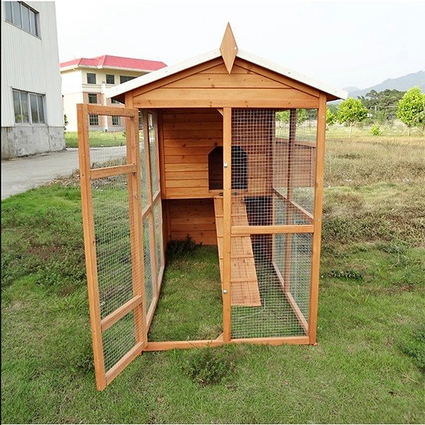 Application Wooden chicken coop, wooden chicken house & wooden pet house Product Size 200x135x150cm (LxWxH) Material Fir wood Color Customized color acceptable Closure Type Horizontal Sliding Pattern Print Packing Flat packing with clear assembly instruction Painting Eco-friendly painting,accept testing by SGS,TUV etcAbout this itemSturdy construction and weatherproof: made from high quality natural fir wood and coated with an environmentally friendly, waterproof, non-toxic varnish. The raw wood is sturdy and natural for your beloved pet. The cage is painted with environmentally friendly paint that is waterproof, anti-corrosive and UV resistant for a long life, providing a warm home for your pet.Spacious and user-friendly design: the large coop is equipped with nesting boxes, resting boxes and ramps. Your poultry can lay their eggs in the nesting boxes. Sliding doors and ramps allow easy access to the raised rearing area for your poultry. A wooden ridge above the ramp prevents the poultry from slipping. The mesh door is designed so you can watch your pets without disturbing them.Removable trays and fencing: there are removable bottom sliding trays for easy cleaning. High quality mesh fencing provides a healthy poultry lifestyle. With the pitched roof, your poultry can run outside even in rainy weather. Fences are vital for ventilation of your poultry and they also protect your poultry from outside predators.Spacious free space: the large chicken coop is designed with six doors. With double doors to the main house, three doors to the run, and doors to the egg crates, there is plenty of room to move around so that your pet can come and go undisturbed and enjoy happy eating and sleeping times. Separate egg crates prevent eggs from being damaged and left undisturbed, and you will also have a dedicated area to fully interact with your pet, making it even more homely.Raised perches and poultry comfort: The raised perches ensure that your poultry is safe, dry and warm, especially on cold, rainy days. It is also handy in hot weather as they provide shade from the sun and allow easy access to the nest box without exposure to harsh light.