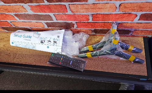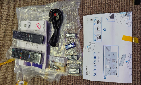 This Sony Bravia is a 50-inch LED technology TV is well protected during shipping with foam inserts and screen edge tape for added peace of mind, the TV also includes ..... .2 remote controls, 4 wall spacers, 2 plastic feet and 2 labels and finally 2 sets of AA batteries.
