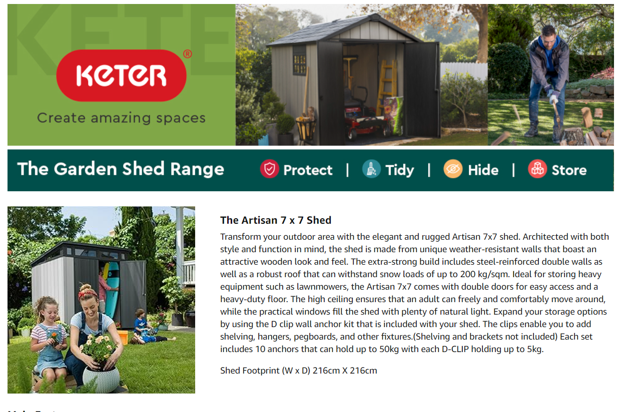 Home / Keter Artisan Outdoor Pent Double Door Garden Storage Shed 7 x 7ft Grey Duotech+ Wood look and feel, Fade Free, All Weather Resistant, Safe and Secure, Zero Maintenance
